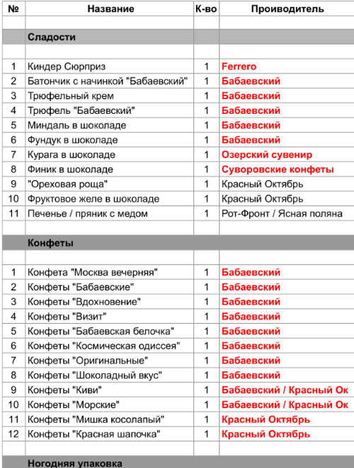 1. Проверить, можно ли внести изменения в состав подарка. Если нет, то скорее всего наборы были собраны еще летом из конфет, произведенных еще раньше