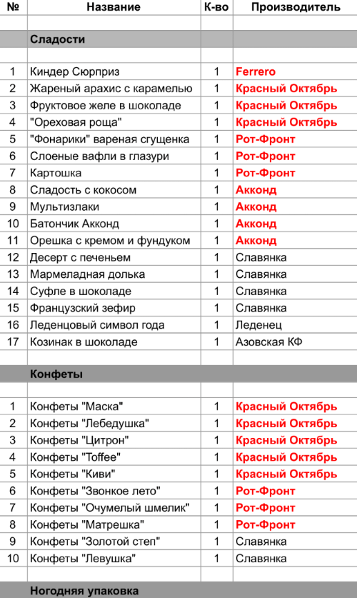 1. Проверить, можно ли внести изменения в состав подарка. Если нет, то скорее всего наборы были собраны еще летом из конфет, произведенных еще раньше